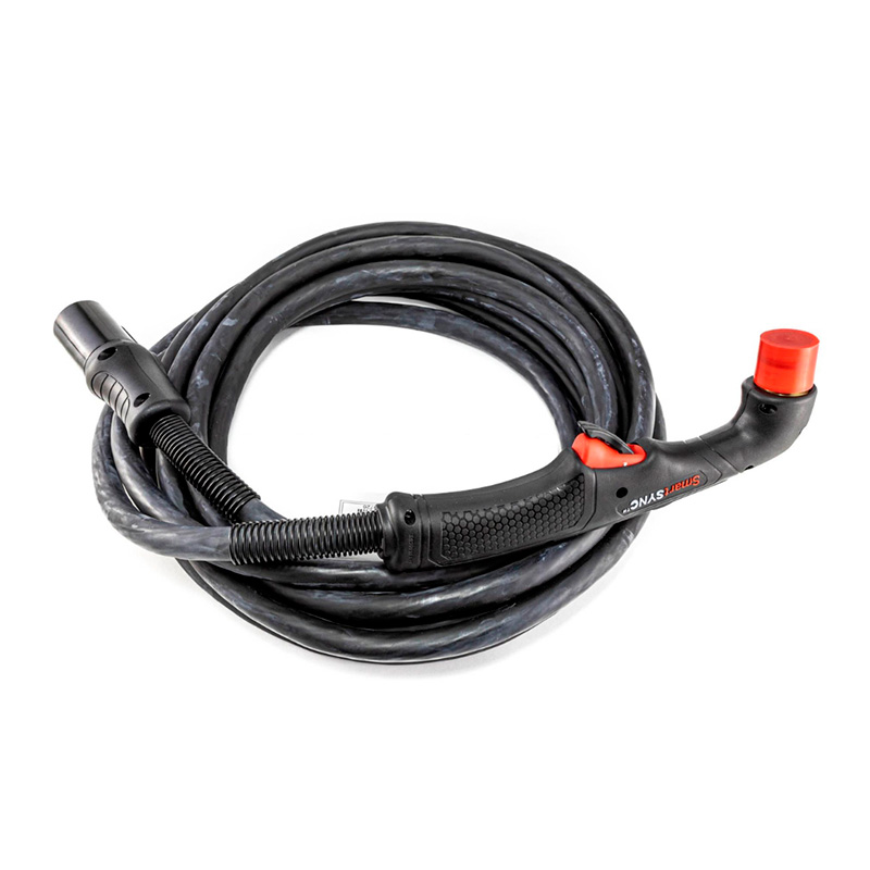 La antorcha manual de corte por plasma con tecnología SmartSYNC diseñada para sistemas Powermax SYNC, que permite una operación más sencilla y eficiente al comunicarse directamente con la fuente de poder para ajustar automáticamente los parámetros de corte según el consumible instalado, ofreciendo mayor precisión, productividad y facilidad de uso en aplicaciones industriales.