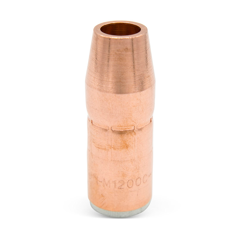 La boquilla N-M1200C de Miller es un nozzle de cobre para pistolas MDX con orificio de 1/2 pulgada. Ofrece ajuste firme, alimentación alineada del alambre y rendimiento estable en soldadura MIG de 100 a 250 amperios, ideal para trabajos industriales y de fabricación.