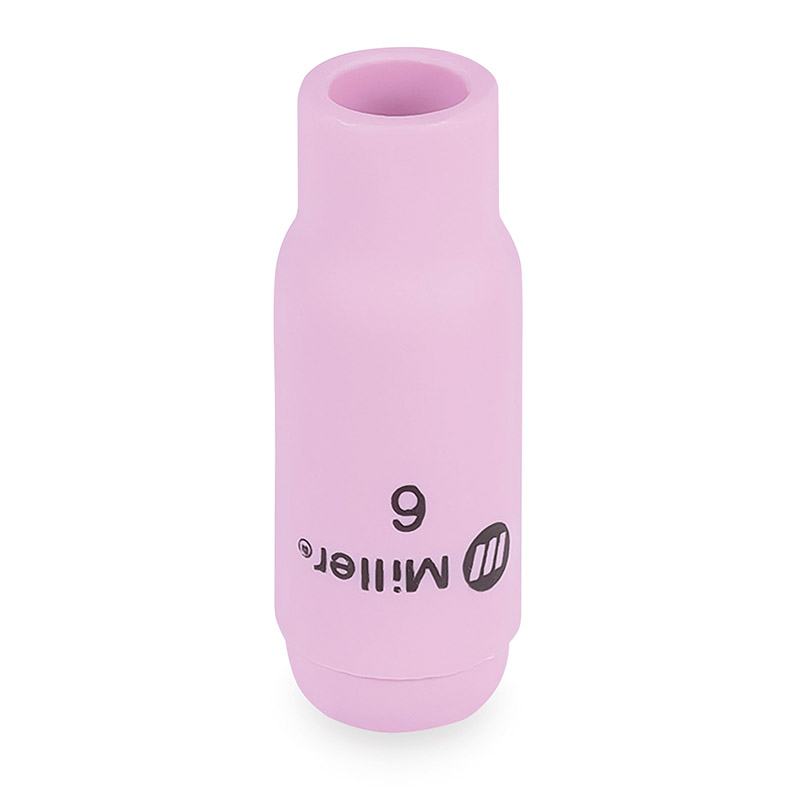 Es una copa de alúmina tamaño #6 con un orificio de 3/8 de pulgada, diseñada para antorchas TIG de las series WP-17, WP-18 y WP-26. Está fabricada en cerámica de óxido de aluminio, lo que le proporciona alta resistencia al calor, buen aislamiento eléctrico y durabilidad en trabajos prolongados. Su función es dirigir de forma uniforme el gas protector hacia el arco, asegurando una cobertura estable que evita la contaminación del baño de soldadura y mejora la calidad del cordón. Gracias a su diseño roscado y su construcción robusta, ofrece un ajuste firme en la antorcha y un desempeño confiable tanto en aplicaciones industriales como en trabajos de precisión.