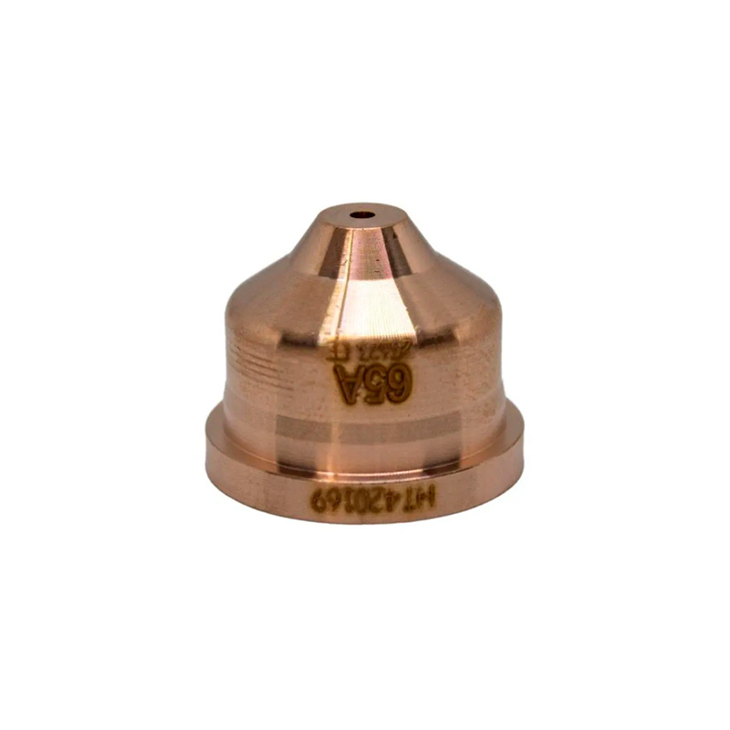 Consumible original llamado boquilla de plasma 65 amperios Duramax Hyamp y su función es dirigir y concentrar el arco de plasma para lograr cortes estables y precisos siendo compatible con equipos Hypertherm Powermax65 Powermax85 Powermax105 y Powermax125 cuando se utilizan antorchas Duramax Hyamp dentro del rango de corriente de 45 a 65 amperios