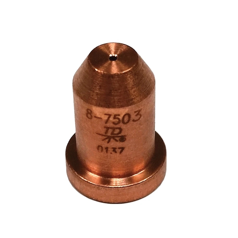El 8-7503 es un consumible original de Thermal Dynamics / Victor / ESAB, correspondiente a un electrodo para antorchas de plasma SL60 y SL100, utilizadas en equipos de corte por plasma de la serie Cutmaster y sistemas manuales de aire plasma. El electrodo es uno de los componentes principales dentro del conjunto de consumibles, ya que se encarga de conducir la corriente eléctrica necesaria para generar el arco de plasma que permite cortar el material. Este modelo está diseñado para trabajar con aire como gas de plasma y se utiliza comúnmente en aplicaciones de corte de acero al carbón, acero inoxidable y metales no ferrosos en trabajos de fabricación, mantenimiento, construcción y reparación industrial. El número de parte 8-7503 aparece en tablas oficiales de consumibles de Thermal Dynamics como electrodo estándar para antorchas SL60 y SL100, donde se utiliza junto con otros consumibles compatibles como boquilla, distribuidor de gas, tapa protectora y retenedor, formando un sistema completo que garantiza el correcto funcionamiento de la antorcha. Está fabricado con materiales resistentes a altas temperaturas e incluye un inserto diseñado para soportar el desgaste producido por el arco eléctrico, lo que permite mantener una descarga estable y prolongar la vida útil del consumible cuando se usa en condiciones adecuadas. El uso del electrodo correcto es fundamental para mantener la calidad del corte, evitar fallas de encendido y reducir el desgaste prematuro de la boquilla, por lo que el 8-7503 es un consumible esencial en el mantenimiento regular de los equipos de corte por plasma Thermal Dynamics utilizados en aplicaciones industriales y profesionales.