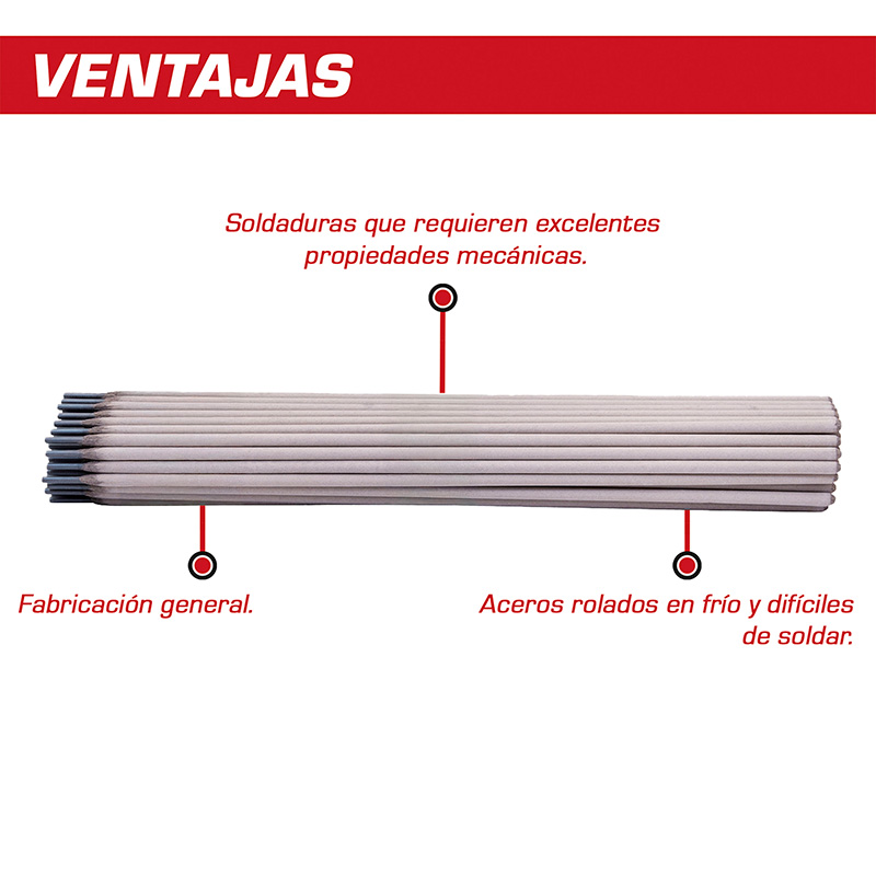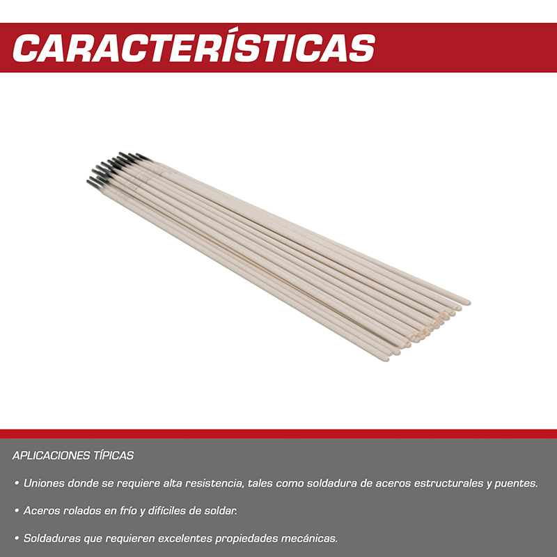 Electrodo revestido Lincoln Electric E7018 de 3/32″ diseñado para soldadura de aceros al carbono y baja aleación. Ofrece arco suave y estable con baja salpicadura, excelente ductilidad y depósitos resistentes a fisuras, ideal para proyectos estructurales de alta resistencia.