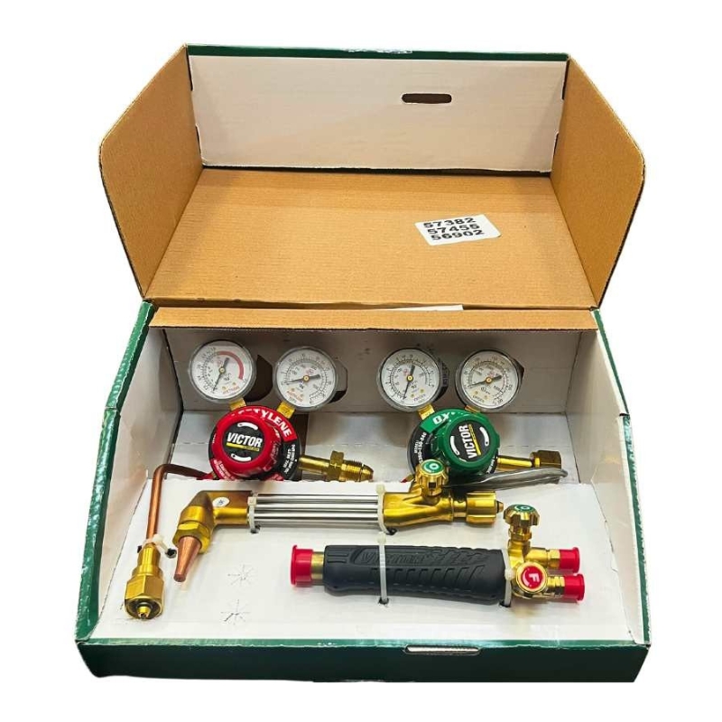 El equipo de corte y soldadura Victor 0384-2625 Medalist 350 es un sistema de oxicorte diseñado para aplicaciones industriales que requieren confiabilidad, durabilidad y un alto desempeño en procesos de corte y soldadura de metales. Este equipo forma parte de la reconocida serie Medalist 350, desarrollada para trabajos de fabricación, mantenimiento industrial y reparación en entornos donde la resistencia del equipo y la estabilidad de la flama son factores fundamentales. El sistema utiliza oxígeno y acetileno como gases de operación, permitiendo generar una flama eficiente para procesos de corte y soldadura en diversos materiales metálicos. Gracias a su diseño robusto y a la calidad de sus componentes, el equipo puede realizar cortes en acero de hasta 6 pulgadas de espesor cuando se utilizan boquillas adecuadas, así como trabajos de soldadura en materiales de hasta 3 pulgadas, lo que lo convierte en una herramienta versátil para múltiples aplicaciones industriales. El conjunto incluye un maneral WH411C, un aditamento de corte CA411-1, una boquilla de corte 1-1-101, una boquilla de soldadura 2-UM-350, además de reguladores de oxígeno y acetileno de la serie G350, componentes diseñados para proporcionar un control preciso de la presión y una operación segura durante el trabajo. La construcción del equipo está pensada para soportar condiciones exigentes de uso continuo, ofreciendo estabilidad en la flama y eficiencia en el consumo de gas. Debido a estas características, el equipo Victor Medalist 350 es ampliamente utilizado en talleres metalmecánicos, fabricación estructural, mantenimiento industrial y trabajos de reparación, donde se requiere un sistema confiable para realizar operaciones de corte y soldadura con oxiacetileno.