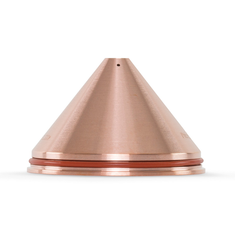 Consumible original llamado escudo frontal de plasma de 40 amperios cuya función es proteger los consumibles internos de la antorcha y ayudar a mantener un arco de plasma estable durante el corte de metales no ferrosos siendo compatible con sistemas Hypertherm XPR170 XPR300 y XPR460 en aplicaciones de corte por plasma mecanizado a 40 amperios.