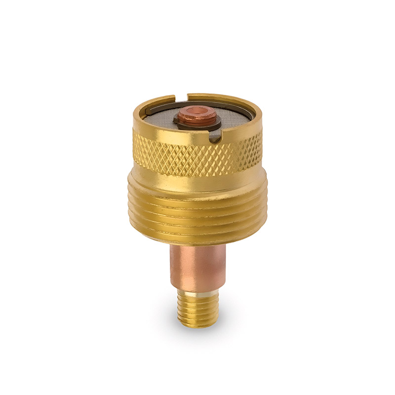 Gas lens “1/8 grande” fabricado en laton cobre y diseñado para antorchas TIG de las series WP 9, WP 9P, WP 20, WP 20P, WP 22 y WP 25. Este componente permite utilizar electrodos de hasta un octavo de pulgada y mejora la cobertura del gas protector al generar un flujo mas uniforme y estable alrededor del arco. Gracias a su construccion en metal de alta conductividad ofrece buena resistencia al calor y asegura una conexion confiable durante la soldadura. Es un consumible esencial para trabajos TIG que requieren mayor estabilidad del arco, mejor proteccion del baño y compatibilidad con electrodos de mayor diametro.