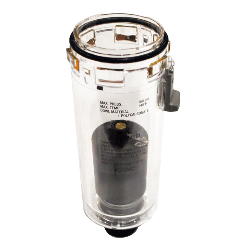 Recipiente transparente para filtro de aire cuya función es cubrir y proteger el filtro de aire interno de la fuente de plasma y facilitar la limpieza y mantenimiento del sistema de suministro de aire siendo compatible con equipos Hypertherm Powermax65 Powermax85 Powermax105 y Powermax125 y viene con el o-ring necesario.