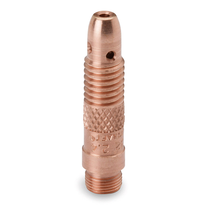 Portamordaza “medida 3/32“de cobre para antorchas TIG WP 17 WP 18 y WP 26 diseñado para sujetar tungsteno de tres treinta y dosavos de pulgada. Ofrece buena conductividad estabilidad del arco y un ajuste seguro del electrodo para lograr soldaduras limpias y consistentes.
