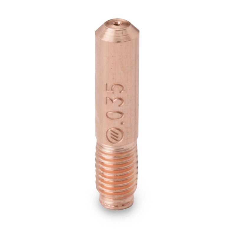 La punta de contacto 000068 de Miller es un consumible de cobre diseñado para soldadura MIG con alambre de 0.035 pulgadas. Su función es conducir la corriente hacia el alambre y guiarlo con precisión al salir de la pistola, lo que garantiza un arco estable y una alimentación uniforme durante la soldadura. Tiene una longitud aproximada de 1.125 pulgadas y es compatible con pistolas de la serie M de Miller, como M-10, M-15, M-25, M-40, M-100 y M-150. Su construcción en cobre permite una excelente conductividad eléctrica y resistencia al desgaste, lo que la convierte en una pieza esencial para mantener la calidad del cordón y evitar fallas como quemado del alambre o pérdida de estabilidad del arco. Es un componente indispensable en trabajos industriales, reparación, fabricación y aplicaciones de producción, donde se requiere desempeño constante y confiable en procesos MIG.