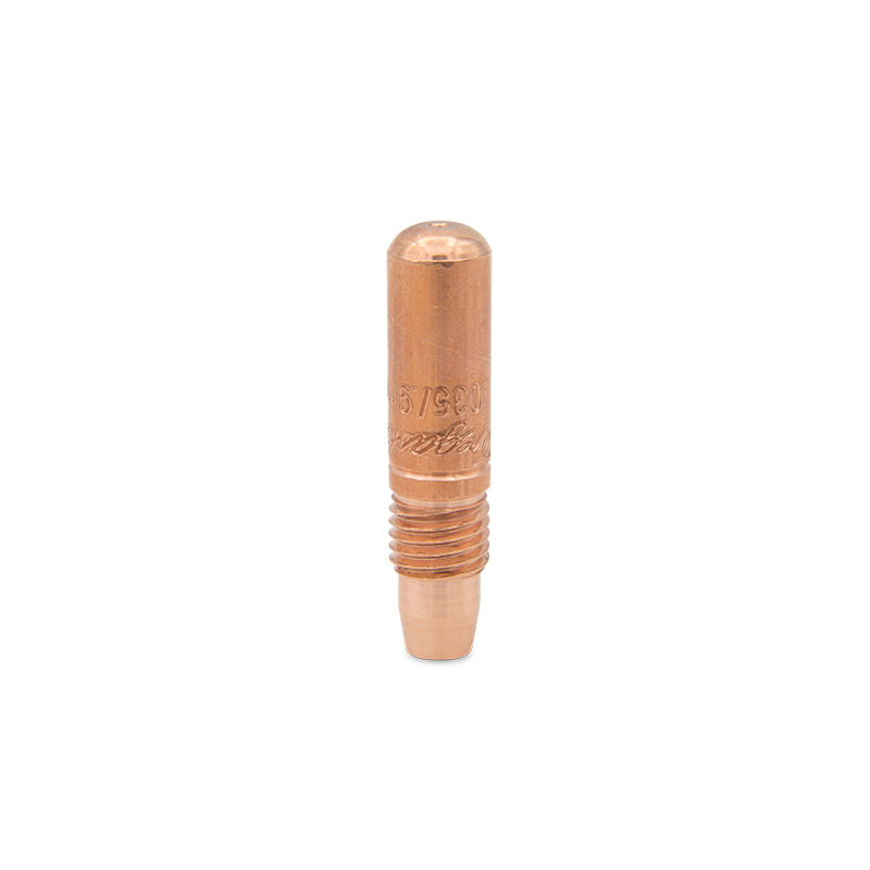 La punta de contacto Tregaskiss 403-27-35 es un consumible técnico de soldadura MIG (GMAW) diseñado para entornos industriales donde se requiere una alimentación de alambre precisa, transferencia eléctrica eficiente y una vida útil prolongada bajo condiciones de trabajo continuas. Este modelo forma parte de la familia TOUGH LOCK® Extended Life Heavy Duty, que agrupa puntas de contacto fabricadas para ofrecer mayor resistencia al desgaste, menor necesidad de reemplazos y desempeño consistente cuando se trabaja con alambre sólido de 0.035″ (0.9 mm). Está fabricada en cobre de alta conductividad eléctrica y térmica, material que facilita la transmisión de corriente desde la antorcha hacia el alambre, ayudando a mantener un arco estable y minimizando las pérdidas eléctricas que pueden afectar la calidad del cordón de soldadura. El diseño roscado de fijación permite un acoplamiento seguro dentro del difusor y la cabeza de retención de la pistola MIG, evitando que la punta se afloje debido a vibraciones o movimientos constantes durante la operación, y asegurando una alimentación de alambre consistente a lo largo del proceso. Además, el sistema TOUGH LOCK® optimiza la disipación de calor en el punto de contacto, lo que contribuye a prolongar la vida útil del consumible y a reducir el tiempo de mantenimiento, favoreciendo ciclos más largos de operación sin interrupciones. La punta de contacto 403-27-35 es compatible con pistolas MIG Tregaskiss Tough Guns®, así como con otras pistolas que aceptan consumibles TOUGH LOCK®, lo que la hace adecuada para una amplia gama de aplicaciones de soldadura MIG, desde manufactura ligera hasta producción industrial automatizada. Su construcción robusta y materiales de alta calidad brindan resultados repetibles y confiables, haciendo de este consumible una opción ideal para talleres, líneas de producción y trabajos industriales donde la eficiencia operativa y la calidad del cordón soldado son prioridades.