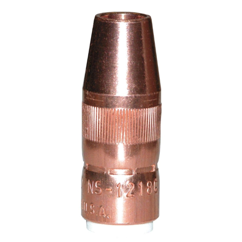 Es un consumible de la serie Centerfire™ diseñado para mejorar la difusión del gas protector alrededor del arco durante el proceso de soldadura MIG. Fabricada en latón de alta calidad, esta tobera cuenta con un diámetro interno de 1/2″ y un receso de 1/8″, lo que permite una cobertura de gas concentrada y estable que ayuda a reducir la oxidación y la contaminación del baño de soldadura. Su diseño incorpora un escudo interno contra salpicaduras que suaviza el flujo de gas, mejora la eficiencia del proceso y contribuye a obtener cordones más limpios. La boquilla presenta un diseño de instalación roscada, lo que facilita un ajuste firme y seguro al consumible o cuerpo correspondiente y permite un reemplazo rápido sin necesidad de herramientas especiales, reduciendo tiempos de mantenimiento. Además, la construcción robusta en latón ofrece buena resistencia al desgaste térmico y mecánico propio de aplicaciones de soldadura continuas. Gracias a estas características, la NS-1218B proporciona un rendimiento consistente y confiable, favoreciendo una mejor estabilidad del arco, menor turbulencia del gas y resultados más uniformes en soldaduras MIG.