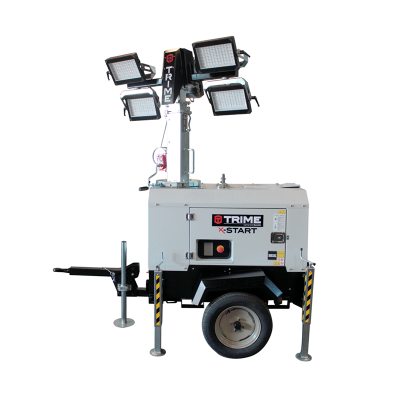 La Torre de luz TRIME X-START es una torre de iluminación móvil con motor diésel económico y cuatro focos LED de bajo consumo, diseñada para ofrecer iluminación potente y confiable en obras de construcción, eventos al aire libre, carreteras y canteras. Su mástil manual de hasta 8 m con 340° de rotación y estabilizadores ajustables garantiza un despliegue seguro y versátil en cualquier sitio de trabajo.