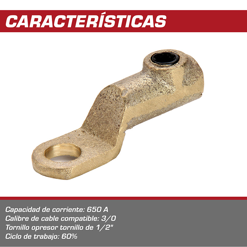 Es un accesorio diseñado para conexiones eléctricas robustas en sistemas de soldadura y aplicaciones industriales donde se requiere una transmisión de corriente confiable y eficiente. Fabricada con materiales de alta conductividad y resistencia, esta zapata permite una fijación segura y estable de cables gruesos utilizados en procesos de soldadura como MIG, TIG o electrodo revestido. Su diseño incluye un mecanismo de sujeción que asegura que el cable se mantenga firmemente conectado al circuito eléctrico reduciendo caídas de tensión y mejorando la eficiencia en la entrega de corriente desde la fuente de soldadura hasta los componentes o cables de trabajo. Este tipo de zapata es ideal para mantenimientos correctivos o preventivos de sistemas eléctricos de soldadura, asegurando que las conexiones no se aflojen ni presenten puntos calientes que puedan afectar el desempeño del equipo. Al ser un accesorio original de Lincoln Electric, garantiza compatibilidad con los estándares de la marca y durabilidad en entornos exigentes de trabajo pesado, lo que contribuye a prolongar la vida útil del equipo y mantener un rendimiento consistente en cada operación de soldadura.